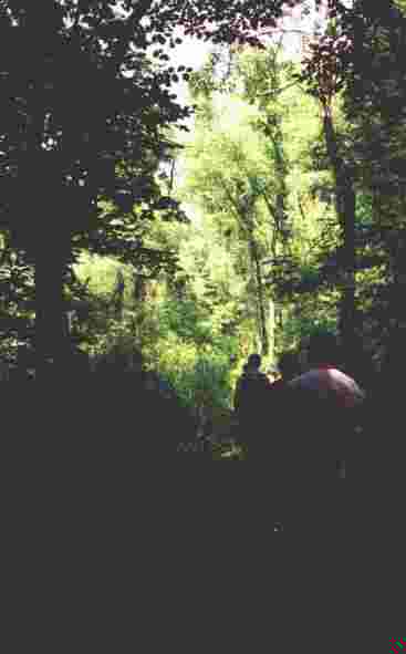 Links: Am Rhein bei Karlsruhe-Rappenwört; rechts: Wanderung durch den Auewald.