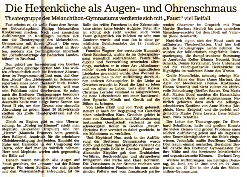 Theatergruppe des Melanchthongymnasiums Bretten 1997