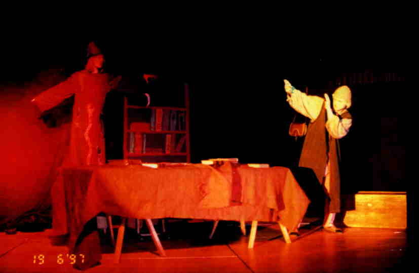 Nacht: GEIST Wer ruft mir? FAUST Schreckliches Gesicht! GEIST Du hast mich mächtig angezogen, An meiner Sphäre lang gesogen, Und nun- FAUST Weh! ich ertrag dich nicht! |