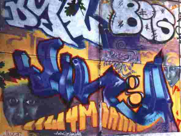 Graffiti-Bilder zeigen die Wand vor der Übermalung